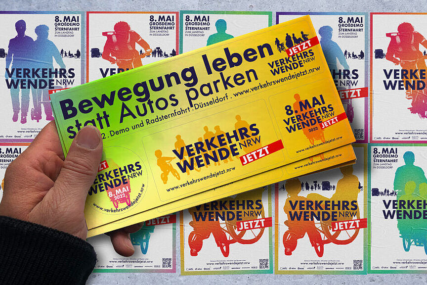 Aufruf zur Verkehrswende-Demo am 8. Mai auf der Landtagswiese in Düsseldorf. Mitmachen beim Zubringer aus Köln!